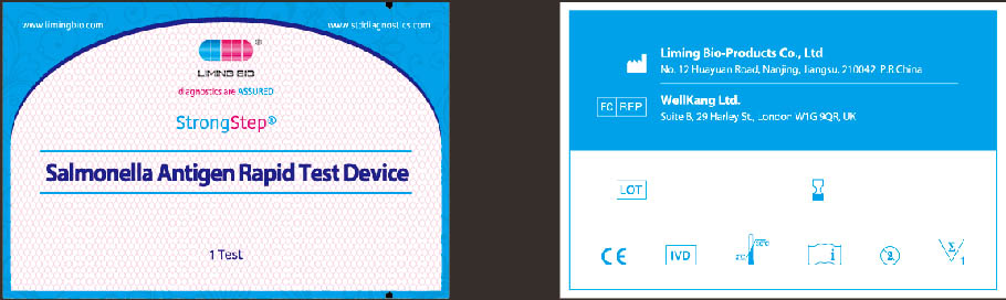 Hitri test Salmonella Antigen odkrije salmonelo skozi vizualnoInterpretacija razvoja barv na notranjem pasu. Anti-salmonelaProtitelesa so imobilizirana na preskusnem območju membrane. Med testiranjemVzorec reagira s protitelesi proti salmoneli, konjugirana na barvne delcein predhodno na konjugirani blazinici testa. Zmes se nato seliskozi membrano s kapilarnim delovanjem in sodeluje z reagenti namembrana. Če je v vzorcu dovolj salmonele, bo barvni pasObrazec na preskusnem območju membrane. Prisotnost tega barvnega pasuOznačuje pozitiven rezultat, medtem ko njegova odsotnost kaže na negativen rezultat. TheVidez barvnega pasu na kontrolni regiji služi kot procesni nadzor,kar kaže na to, da je bil dodan ustrezen volumen vzorca in membranaZgodilo se je.
